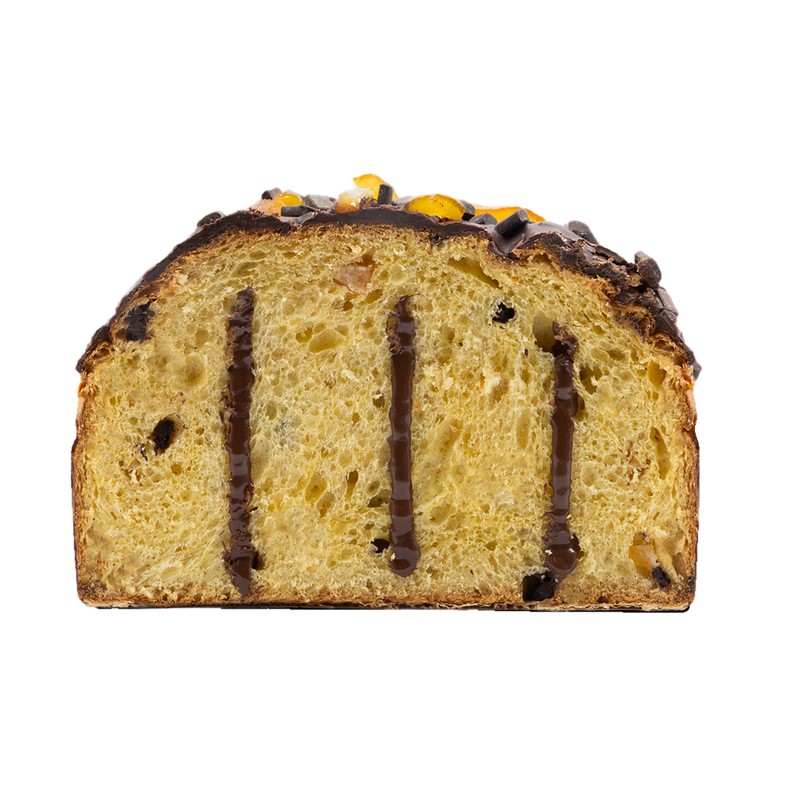 Artisanal Panettone with dark chocolate, orange and rum.