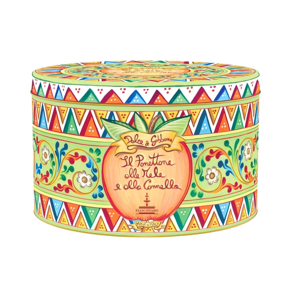 Fiasconaro Artisan Panettone with natural leavening, enriched with the sweetness of candied apple and wrapped in the unmistakable aroma of cinnamon, a product that combines tradition and innovation to create unique combinations of style and flavor.