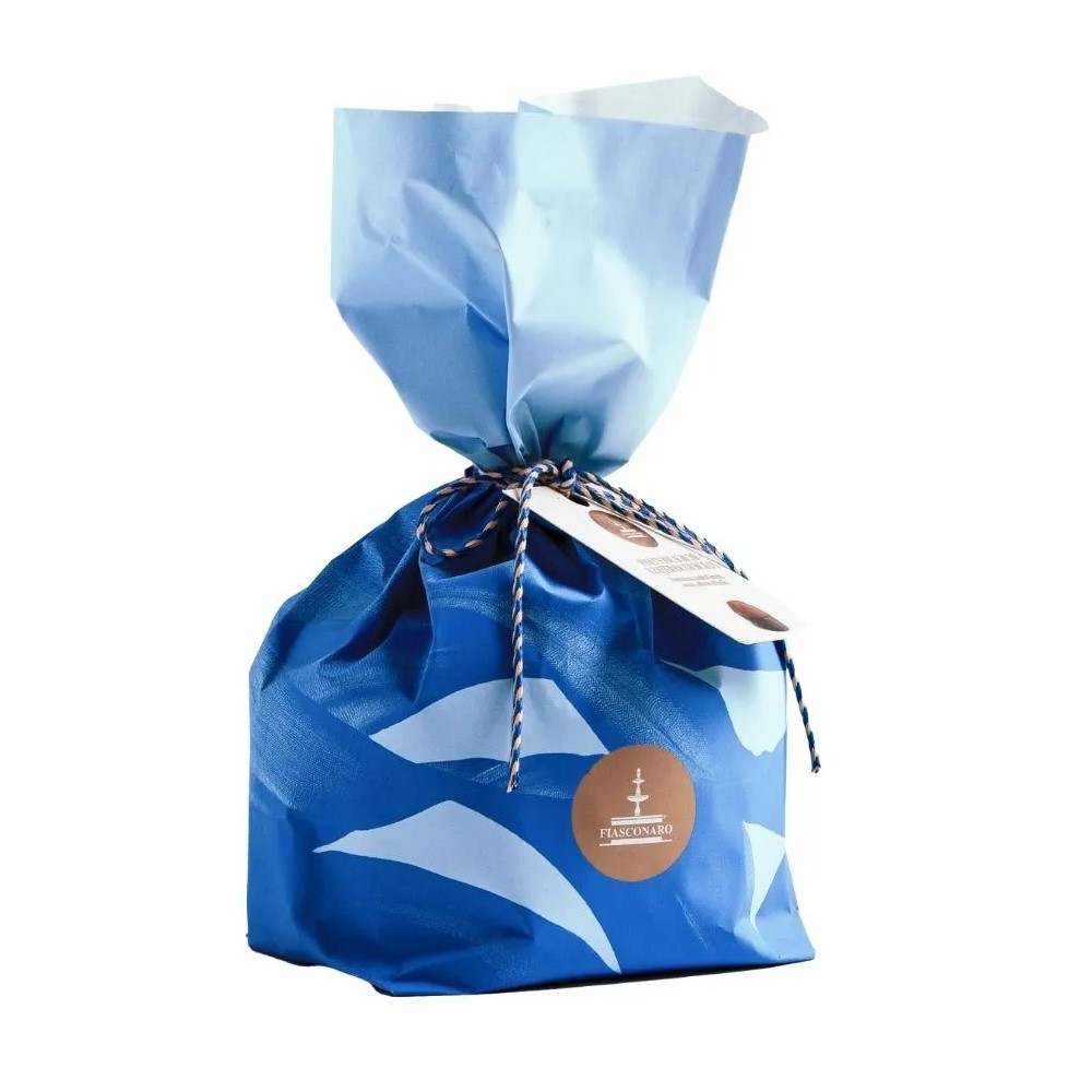 Panettone without raisins and candied fruit, to be sprinkled with powdered sugar, hand-wrapped.